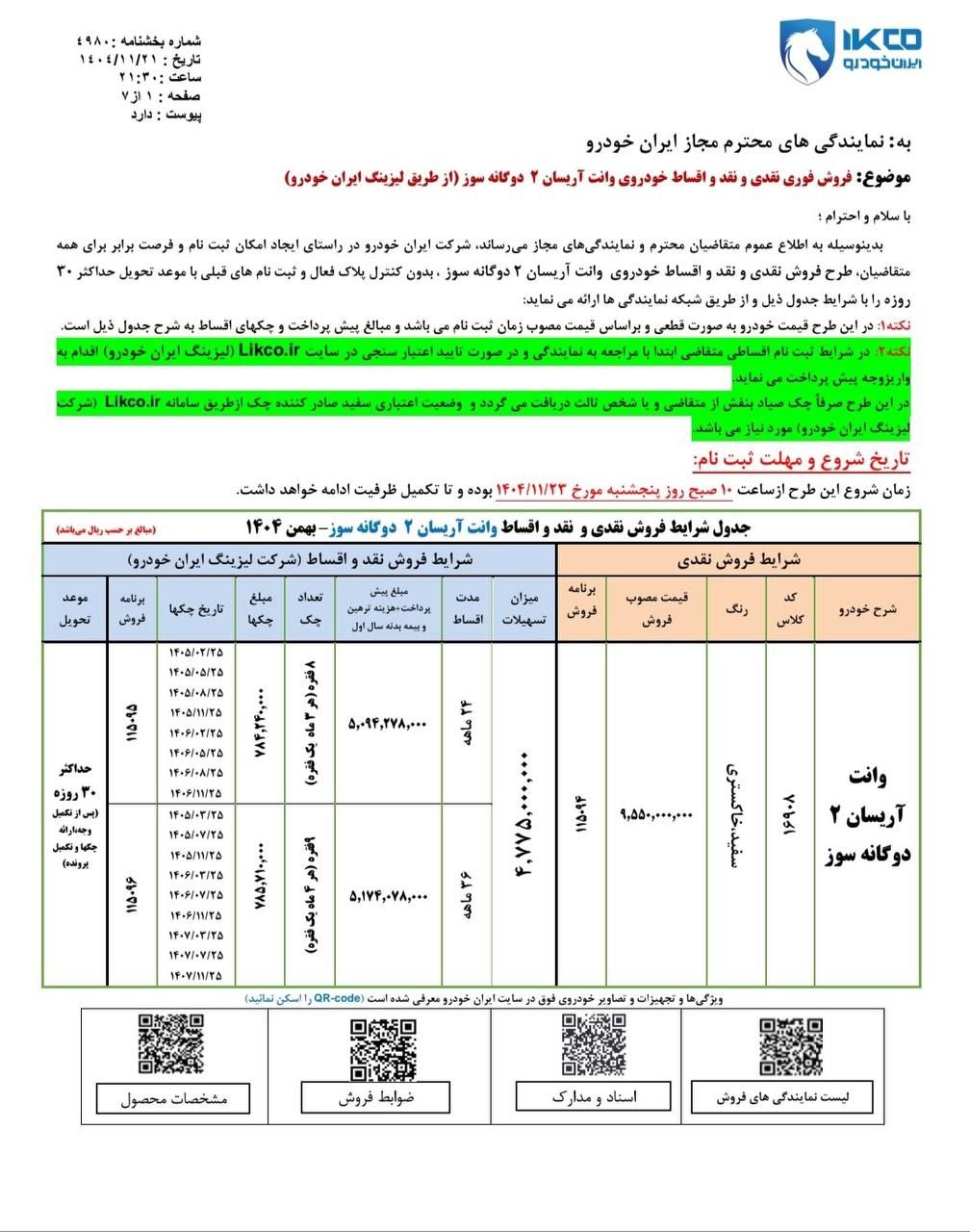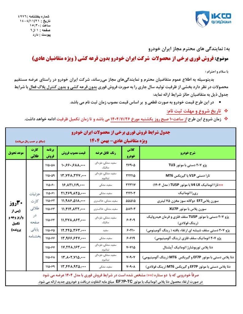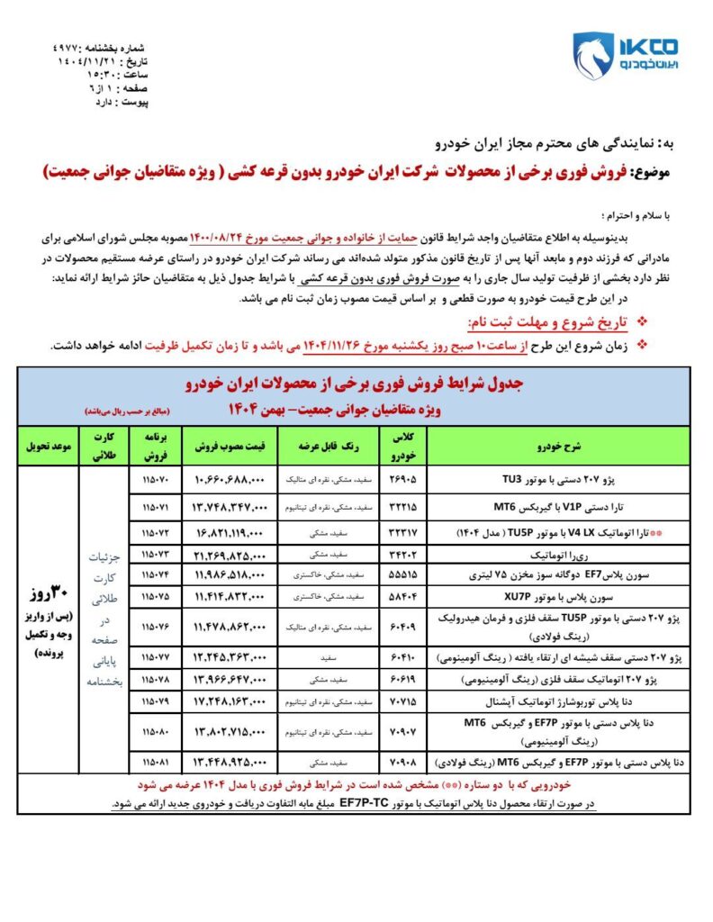 آغاز ثبت نام برخی از محصولات ایران خودرو از روز یکشنبه مورخ 26 بهمن ماه 1404
